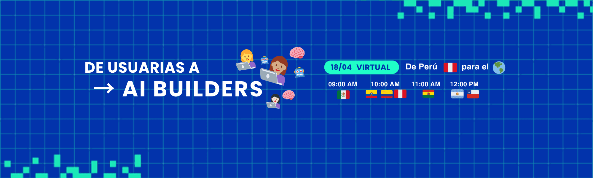 Durante años nos hicieron creer que la IA era solo para ingenieras. Hoy rompemos ese patrón. Explora caminos como el no-code, código, diseño conversacional y automatizaciones, y entiende cómo tú también puedes ser parte de quienes están construyendo el presente y el futuro. La IA ya está aquí. La pregunta es: ¿serás usuaria… o una BUILDER (creadora)? [VIRTUAL] Viernes 18/04 a las 10:00 AM Perú (GTM-5) para el mundo + becas 🎁